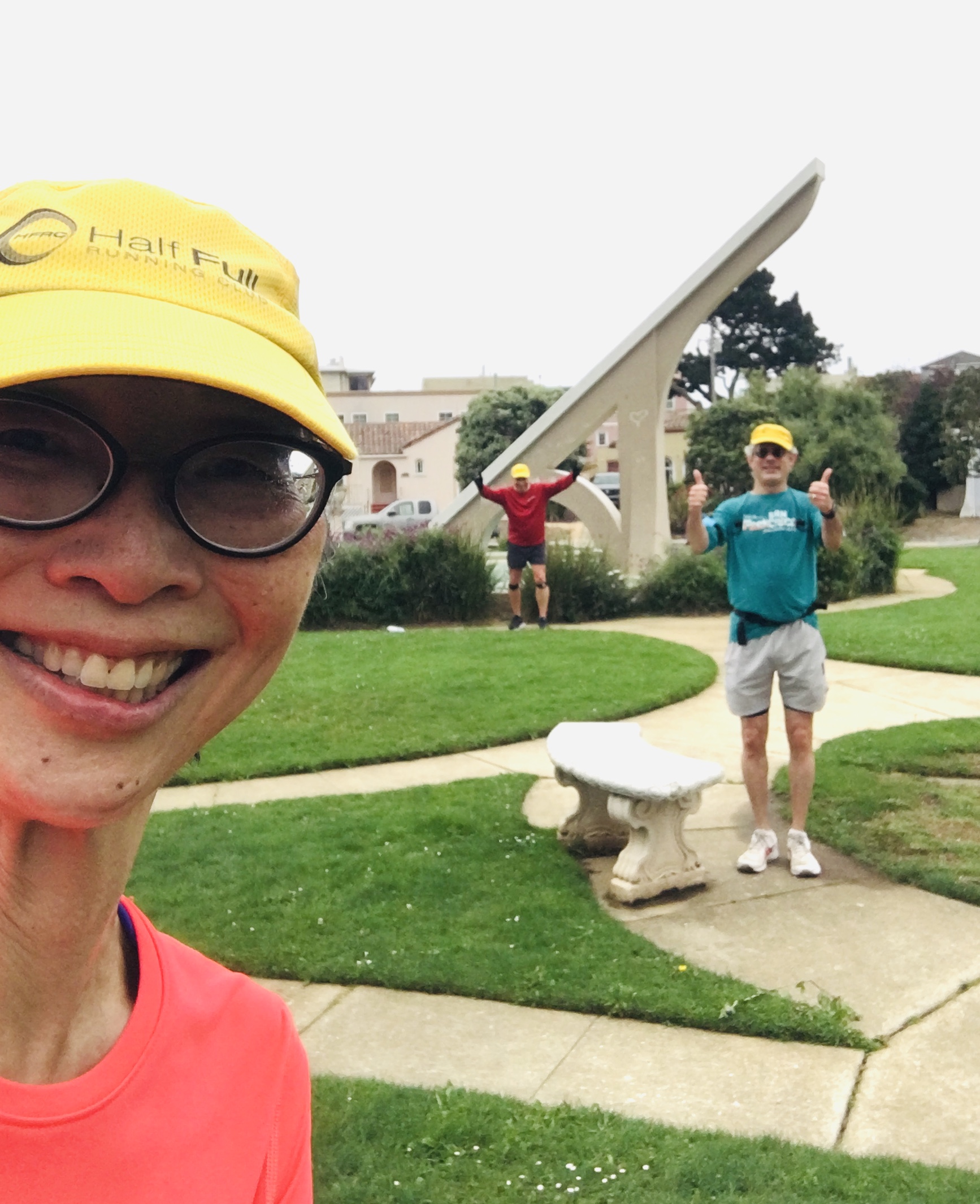 If one runs in circles, do we gain or lose time? We got turned around heading toward the sun dial and saw the same streets over and over. Others ran a more direct route. The group reconvened with coffee and baked goods from Tartine, a favorite. Thanks Patrick for a challenging hilly but scenic route.